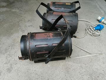 3 fari da cinema, teatro, fotografia, vintage anni '50 in metallo 1000 watt, neri. Misurano lunghezza 45 cm, Dimensioni Diametro 15 cm x Profondità 25 cm, circa. Trattasi di un oggetto usato, Vintage che presenta i normali segni del tempo. Condizioni molto buone. Pronto per l'utilizzo. vendo a blocco a euro 650,00, mentre l'uno a euro 240,00. Sono escluse consegne o spedizioni. Cell. 3393553981