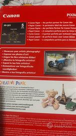 2) un altro contiene circa 6 fogli in formato 10x15 cm, 260g/m2 (grammatura), by Canon. Prezzo: 4 eur.