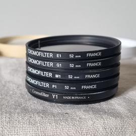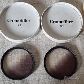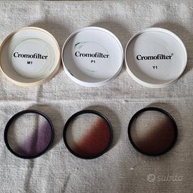 Vendo 5 pz Cromofilter made in France diametro 52mm in diverse sfumaure di colore in perfette condizioni. Questi filtri sono stati pensati per fotografia creativa / artistica / effetti particolari. Cromofilter SA è stata fondata nel 1973 dal fotografo freelance di moda Jean Cokin per distribuire il Cokin Creative Filter System. I filtri Cromofilter sono sfumati a metà in 5 differenti tonalità E1, G1, M1, P1 e Y1 dal grigio blu al marrone rossiccio. Ogni filtro ha una piccola astina che permette di ruotare il filtro modificando la posizione della sfumatura. Tutti i filtri sono in ottime condizioni senza graffi . Sono compresi 5 contenitori originali Cromofilter in plastica trasparente in condizioni piuttosto usurate nella parte esterna ma in ordine all'interno. E' compreso un astuccio custodia in finta pelle anch'esso usurato ma ancora funzionale.