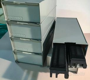 6 SCATOLE PER DIAPOSITIVE con 2 caricatori scorrevoli da 50 dia cadauno. Marca POSSO - Made in France Condizioni perfette