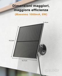 Ricarica Solare: Il pannello solare è un pannello solare in silicio monocristallino altamente efficiente e stabile con una potenza di uscita di 6W. Fornisce energia solare continua per le telecamere di sorveglianza ricaricabili.