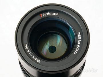 Obiettivo pari al nuovo. Scatola (non in condizioni perfette), custodia in finto cuoio, filtro UV Zomei, istruzioni per la calibrazione del fuoco (lente già tarata per una messa a fuoco precisa), sacchetto 7Artisan. No garanzia importatori.