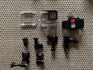 Accessori LUXEBELL per action camera, supporti elastici per casco e per corpo, custodia trasparente con ricambio, supporto a ventosa, 2 batterie, controllo remoto, altri supporti per usi vari