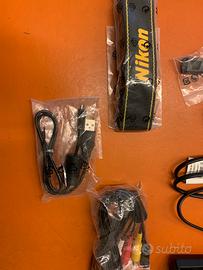 Vendo accessori Nikon D5300: batteria originale, caricabatterie, tracolla, cavi, tappo. Tutto nuovo mai usato