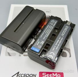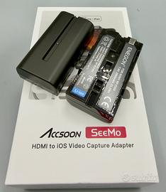 SeeMo è alimentato da batterie ricaricabili Sony NP-F disponibili ovunque. Una volta collegata la batteria, una singola batteria NP-F 970 può durare fino a 8 ore. Una pratica uscita USB-C da 5 V 2 A sul lato del SeeMo consente di alimentare dispositivi come microfoni o piccole luci della fotocamera.