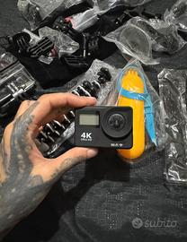 Vendo Action Cam 4K Ultra HD con tantissimi accessori inclusi, perfetta per sport, viaggi o vlog. La fotocamera registra in altadefinizione e viene fornita con la sua custodia subacquea e un kit completo di supporti e staffe per ogni tipo di utilizzo (casco, bici, moto, auto, ecc..)