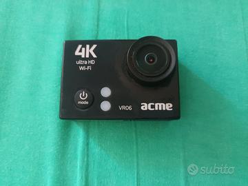Action cam ACME 4K Ultra HD con Wi-Fi. Usata poco, in perfette condizioni e completa della sua confezione originale e di tutti gli accessori, come indicato nella confezione. Schermo da 2"; lente grandangolare 140°; batteria extra e caricatore aggiuntivo.