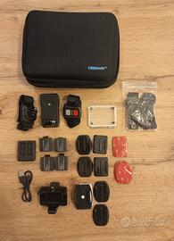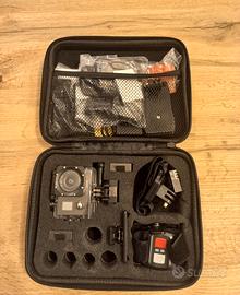 Può essere utilizzata sia con frame aperto che ermetico. In dotazione oltre alla action cam come si vede in foto: