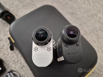 Tre Action Cam Sony HDR AS200 e HDR AS15 in condizioni ottime e con tantissimi accessori originali. -Sony HDR AS200 in ottime condizioni con GPS -Sony HDR AS15 in ottime condizioni -Sony HDR AS15 in cattive condizioni: funziona regolarmente, la scocca è buona ma l’ottica ha delle rigature visibili nei video -Custodia AKA LU1: trasforma la action cam in una telecamera tradizionale con tanto di monitor, utile per viaggi -Custodia subacquea da 5 metri in buone condizioni -Custodia subacquea da 60 metri in buone condizioni -Custodia subacquea da 60 metri molto usata -Comando a distanza WiFi da polso -2 batterie originali sony + 1 batteria compatibile non originale -3 supporti adesivi piatti nuovi -2 supporti adesivi curvi, per casco, nuovi -2 clip innesto rapido standard nuove (piu una ulteriore da riparare) -1 clip innesto rapido con snodo (in foto montata sull’imbragatura. -Una imbragatura pettorale -Una imbragatura da casco con innesto a vite solo per la AS200 -Una imbragatura da casco -Una imbragatura da casco compatibile con la custodia subacquea -Adattatore vite della AS200 con filetto standard fotografico -Custodia Originale Sony Non originali (stampati) 4 tappi proteggi obiettivo: 2 morbidi e 2 rigidi. Imballi del tutto non presenti. La forma di queste camere si adatta molto bene per il montaggio sul casco o in altre applicazioni dove lo sviluppo in lunghezza offre minore ingombro; mentre per il montaggio con la fascia pettorale è meglio la GoPro che rimane piatta. Vendo per passaggio a sistema DJI (Osmo 360 e Action2) che condivide lo stesso “ecosistema” del drone. Per le caratteristiche tecniche in rete si trova tutto, rimango comunque a disposizione per qualsiasi informazione. Possiamo vederci di persona, zona Ancona, anche per verificare di persona il tutto (nel caso pagamento contanti, bonifico istantaneo, trasferimento denaro PayPal; oppure spedizione con Tuttosubito o come preferite. Evitate proposte assurde, grazie.