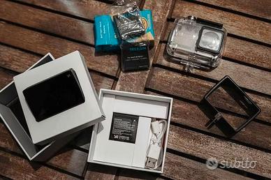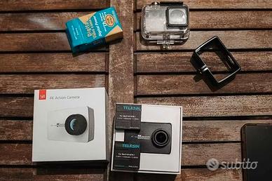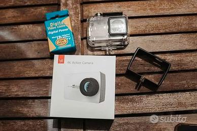 Yi 4k Action e Sports Camera, video fino a 4k/30 fps o 1080p/120fps ed immagini da 12MP anche Raw, da campo visivo largo a stretto. Dispone di controllo vocale, stabilizzatore, bluetooth e wifi incorporati per controllo e condivisione da App YI o per il controllo da telecomando opzionale. Registra mediamente fino a 2 ore, mai surriscaldata. Condizioni perfette, utilizzata poche volte e mai subito urti, funziona perfettamente. Si vende comprensiva di: - Scatolo Originale - Cavo Originale (mai utilizzato tra l'altro) - 3 Batterie (1 originale + 2 Telesin) - Case impermeabile trasparente - Custodia Telaio Non è compresa la scheda MicroSD Vendo soltanto per passaggio ad altra action cam. Ritiro a Cava De' Tirreni o Salerno, o spedisco.