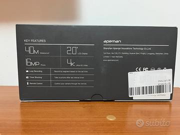 Action camera marca Apeman, utilizzata pochissimo pari a nuovo, con scatola originale e tutti gli accessori. Video in 4K ultra HD, waterproof fino a 40m.