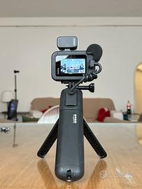 mi potete scrivere su whatsapp , Pinar +393394720349 Mai usato a fuori, solo a casa 2 volte Prezzo trattabile! GoPro Hero 13 Creator Edition Il pacchetto HERO13 Black Creator Edition è un potente centro di produzione di contenuti creativi, una suite all-in-one che rende la realizzazione di vlog, le riprese cinematografiche e i live streaming più semplici che mai. Il suo componente principale è la fotocamera HERO13 Black che offre video di qualità superiore con risoluzione 5,3K60 e la pluripremiata stabilizzazione video HyperSmooth 6.0. La fotocamera è fissata a una versatile impugnatura porta batteria che assicura più di 5 ore di registrazione in 4K per ogni ricarica e dispone di pulsanti integrati che ti consentono di controllare facilmente la GoPro durante le riprese più lunghe. Questo sistema completo presenta un microfono direzionale che riduce il rumore ambientale, l’audio Bluetooth pensato per essere utilizzato con un microfono wireless, una luce a LED, un supporto di aggancio magnetico che semplifica più che mai la sostituzione delle batterie e varie opzioni per il trasferimento delle riprese, tra cui il collegamento wireless, via cavo e con la scheda SD. Inoltre, è compatibile con gli obiettivi serie HB, che ti permettono di ampliare le possibilità di acquisizione per realizzare scatti ultra-grandangolari, riprese anamorfiche di qualità professionale, scatti a una distanza più ravvicinata che mai ed effetti di sfocatura del movimento utilizzando filtri a densità neutra