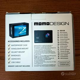 Vendo Action Cam Momo Design, completa di tutti gli accessori (inclusi due cavi per la ricarica e connessione a PC, non inclusi nelle fotografie). Oggetto in perfette condizioni, utilizzato solo due volte.