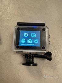 Completa di scatola originale e numerosi accessori come da foto: custodia subacquea, supporti, staffe, telecomando, caricatore doppio batterie, cavi e adesivi.