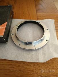 Questo adattatore permette di utilizzare la maggior parte degli obbiettivi LEICA R su le fotocamere con innesto Nikon , Mantiene la messa a fuoco all'infinito. per farlo bisogna smontare l'innseto R e montare questo, è una manovra abbastanza facile ma ci vuole un po di dimistichezza e manualita. si devono svitare le 6 viti presenti sulle baionetta ottiche Leica R , al suo posto si inserisce il raccordo NIKON-LEICA R.