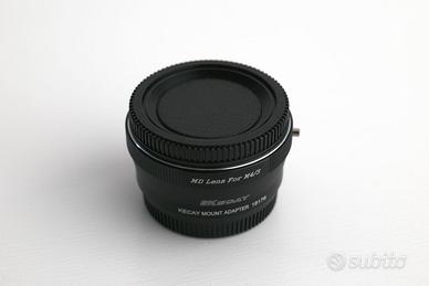 Vendo in blocco due adattatori per montare obiettivi di altri sistemi su fotocamere Micro Four Thirds (M4/3), compatibili con Panasonic Lumix G, Olympus PEN, Olympus OM-D, Blackmagic Pocket Cinema Camera 4K e qualsiasi altra mirrorless con attacco M4/3.