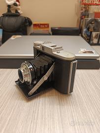 Vendo macchina fotografica analogica medio formato (120). Si tratta di una Adox Golf 63 S prodotta negli anni '50 in Germania. Usa rullini formato 120 ancora in produzione che possono essere trovati sia online che nei negozi fisici. Il soffietto della fotocamera è stato riparato da me in modo efficace usando un nastro isolante liquido per coprire i fori negli angoli del soffietto dovuti all'età della macchinetta e quindi dal cuoio del soffietto che si è incrudolito e rovinato nel tempo. Si trattava di piccoli fori che facevano entrare un po' di luce nelle foto, ogni macchina fotografica d'epoca anche meno datata ma che abbia un soffietto ha sicuramente questo problema. Con questa riparazione la macchinetta è perfettamente utilizzabile ma non può essere chiusa e tenuta quindi come una folding, cioè come era di partenza, altrimenti il nastro isolante liquido ormai solidificato si romperebbe rivelando di nuovo i fori. Scatta negativi in formato 6cm x 6cm. Diaframma regolabile da 6,3 a 22. Tempo di scatto fino a 1/200 di secondo, anche modalità Bulb (B). Messa a fuoco da 1 metro a infinito. Lunghezza focale f:75 mm. Ha un timer per l'autoscatto (levetta rossa) che ogni tanto si blocca ma riesce ad arrivare a fine corsa. La vendo assieme alla sua custodia originale dell'epoca e a 2 rullini NON scaduti: - Un lucky SHD ISO 100 bianco e nero (scadenza 12/2026) - Un IlFord HP5 Plus ISO 400 (scadenza 01/2027) L'ultima foto è un esempio di scatto che ho fatto dopo averla riparata, ne ho anche altri se volete. Vendo perché poco usata e merita qualche fotografo più appassionato dell'analogico che sappia sfruttarla a pieno. Prezzo leggermente trattabile