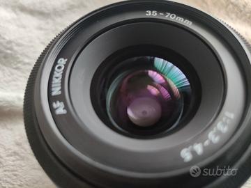 In vendita uno zoom standard AF Nikkor 35-70mm f/3.3-4.5, un obiettivo estremamente compatto e leggero, apprezzato per la sua praticità e la resa ottica affidabile.