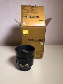 Vendo obiettivo AF-S DX NIKKOR 35mm f/1.8G. Ottica molto apprezzata per nitidezza, luminosità e dimensioni compatte. Ideale per ritratti ambientati, street photography, viaggio e uso quotidiano su reflex Nikon formato DX. Condizioni: * Perfettamente funzionante * Autofocus regolare * Lenti pulite * Tenuto bene * Normali lievi segni d’uso se presenti Incluso: * Obiettivo Nikon 35mm * Tappi anteriore e posteriore * Paraluce / scatola Vendo per inutilizzo. Consegna a mano oppure spedizione disponibile.