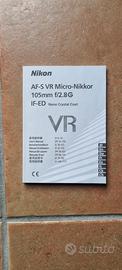 Vendo bellissimo obiettivo Nikkor AF-S 105mm f/2.8 G IF-ED VR Micro (Nikon). Perfetto, come nuovo. Vendo con scatola originale e paraluce. Sempre usato con filtro neutro a protezione del vetro (incluso).