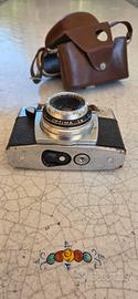 Agfa Optima I con obiettivo Color-Agnar 45mm f/2.8. È dotata di un otturatore centrale e mirino galileiano. La messa a fuoco avviene tramite scala metrica o simboli. Include una custodia originale in pelle. È un pezzo da collezione, popolare per l'esposizione o il restauro.