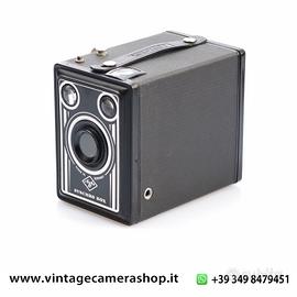 AGFA SYNCHRO BOX + Custodia Originale è una classica fotocamera box medio formato prodotta negli anni ’50, simbolo della fotografia popolare del dopoguerra.Semplice, robusta e intuitiva, rappresenta l’essenza della fotografia analogica più autentica.Realizzata in metallo rivestito, con design minimale e costruzione solida, utilizza pellicola 120 per negativi in formato 6x9 cm, offrendo immagini dal fascino vintage unico. La presenza della custodia originale in pelle aggiunge valore collezionistico e protegge la fotocamera durante il trasporto.