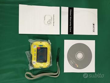 Videocamera digitale per esterni, resistente all'acqua fino a 3 metri di profondita, antiurto in caso di cadute fino a 1 metro di altezza e resistente alla polvere.