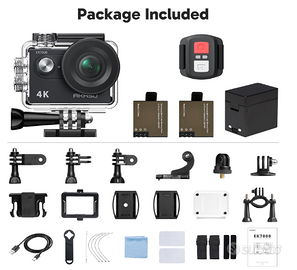 Fotocamera impermeabile fino a 98 piedi. La AKASO EK7000 è progettata per resistere a ambienti estremi, insieme a un resistente custodia impermeabile. Con gli accessori inclusi, trasformala per attività indoor e outdoor.