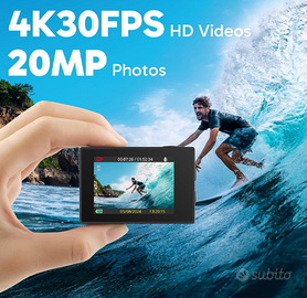 Action camera 4K Ultra HD. Registra video professionali in 4K a 30 fps e video in 2,7K a 30 fps, con foto da 20 MP a una velocità di 30 fotogrammi al secondo per immagini incredibili, che è 4 volte la risoluzione delle telecamere HD tradizionali.