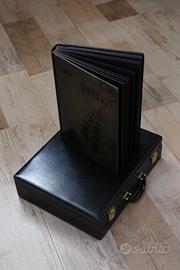 Album in cuoio con copertina artista Pacini. Formato 30x40 cm. verticale , 35 fogli pagine nere, senza veline. valigia compresa. Spedizione escluse