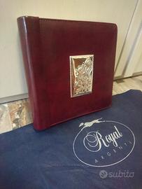Vendo un album fotografico di forma quadrata in pelle ecologica marrone con placca fiorata in argento 925, marca Royal Argenti.