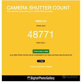 Vendo Sony A1, sempre utilizzata con la Skin protettiva, pochissimi segni di usura 48k di scatti vendo per passaggio a modello superiore. Batteria: ORIGINALE Carica batterie: ORIGINALE Cavo alimentazione: ORIGINALE Cavo USB: ORIGINALE Scatola: ORIGINALE Tappo frontale: ORIGINALE Tracolla: ORIGINALE La Sony A1 è una fotocamera mirrorless con sensore FF (1.0x) da 50.1 megapixels prodotta dal 2021. La gamma di sensibilità, inclusa estensione, è 50 - 102400 ISO e può scattare a raffica di 30 FPS x 238 RAW, 400 JPEG. Accetto solamente Pagamento tramite Paypal, Subito o incontro e scambio. Spese PayPal non comprese