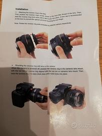 Anello di inversione in metallo, con doppia filettatura, per gli obiettivi delle fotocamere digitali.