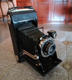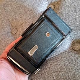 Antica Macchina Fotografica a soffietto Zeiss Ikon Funziona al 100% Sull'obiettivo c'è scritto: "Zeiss Ikon Nettar Anastigmat1:7,7 F=10,5 cm. AGC" La sigla "AGC" sta per Alfred Gauthier Calmbach Ha 4 posizioni di scatto (1/25, 1/75, la posa B e la posa T). Il diaframma va da f7,7 ad f22. La messa a fuoco si regola ruotando l'obiettivo e va da 2 metri ad infinito. Usa pellicola da 120 o 620 nel formato 6x9. La macchina misura cm. 9 x 17 (chiusa). Funziona su tutti i tempi di scatto. Comprata in un Mercatino dell'Antiquariato.