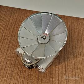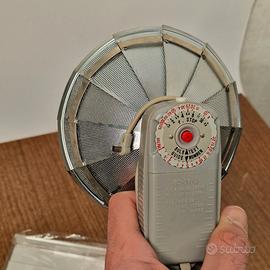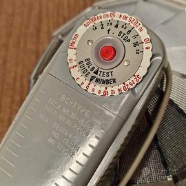 Antico Flash a Bulbo Pieghevole BC-Type – Design Iconico anni '50/'60 L'accessorio definitivo per completare il tuo setup fotografico d'epoca! Rivivi l'epoca d'oro della fotografia con questo splendido flash a bulbo. Caratterizzato dal celebre riflettore circolare pieghevole (stile "fan-fold"), questo oggetto non è solo un pezzo di tecnologia vintage, ma una vera e propria scultura di design meccanico. Dettagli del Prodotto: • Modello: BC-Type (Battery-Capacitor) con calcolatore analogico integrato. • Design Salva-Spazio: Il riflettore metallico si ripiega su se stesso per occupare pochissimo spazio nella borsa. • Calcolatore d'Esposizione: Ghiera rotante originale per calcolare il diaframma corretto in base alla distanza e alla sensibilità della pellicola. • Connessione: Cavo sincro originale incluso per il collegamento alle macchine fotografiche d'epoca. • Accessorio Extra: Incluso astuccio/custodia protettiva originale. Perché acquistarlo: • Per Collezionisti: Fondamentale per completare macchine fotografiche a telemetro o reflex dei primi anni '60. • Arredamento & Prop: Un oggetto di grande impatto visivo per vetrine, studi fotografici o set cinematografici. • Stato Estetico: Ottime condizioni, metallo lucido e plastiche integre.