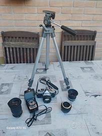 Cavalletto alt. 58-120 cm. reflex Olimpus OM 1, zoom, 50 mm Olimpus, Grandangolare Olimpus, esposimetro, filtri vari. I 40 € sono solo per il Cavalletto, i restante materiale è da trattare