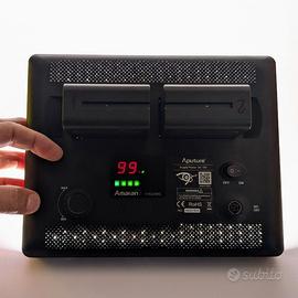 L'AL-528S può essere alimentato con l'adattatore CA in dotazione o con batterie Sony di tipo F/FM/QM utilizzando i doppi slot posteriori per le batterie.