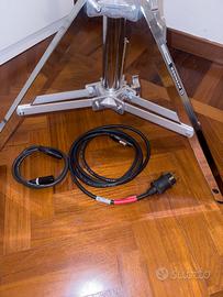 Pannello LED professionale ARRI SkyPanel S60-C P.O. (Pole Operated) Black, riferimento assoluto nel lighting professionale per qualità della luce, affidabilità e versatilità cromatica. Usato pochissimo, perfettamente funzionante, senza difetti estetici o tecnici. Incluso nel set: tutti i cavi originali, Pelican Case PELI 1730 Black con ruote (valigia professionale in ottime condizioni, senza crepe o danni strutturali) e Avenger A1020CS Combo Stand 20 Steel con borsa Manfrotto da trasporto. Lo stativo Avenger è estremamente stabile e adatto a luci pesanti come lo SkyPanel S60, con 1 gamba di livellamento, 3 sezioni / 2 alzate, diametro tubi 45/40/35 mm, portata massima 35 kg, altezza minima 110 cm, massima 198 cm, altezza da chiuso 93 cm, diametro di ingombro al suolo 80 cm, attacco da 28 mm (1 1/8”) e perno da 16 mm (5/8”), peso 7,2 kg, colore argento. Set di ruote A9000N non incluso. Valore totale da nuovo € 7.666,44.