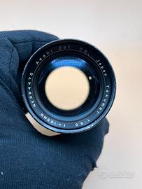 Obiettivo in ottime condizioni, corpo con pochi segni d'uso. Vetri puliti, senza graffi o impurità, le ghiere di apertura e messa a fuoco sono fluide. Con tappo anteriore, tappo posteriore e custodia originali.
