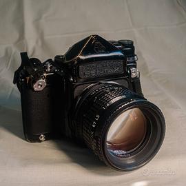 Vendo collezione Pentax medio formato 6x7/67, completa di corpo macchina, mirini e ottiche, in condizioni eccellenti ad eccezione del corpo (vedi sotto).