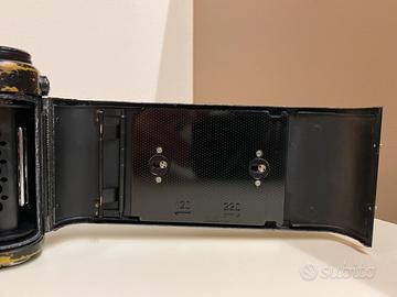 Macchina appena revisionata totalmente da “Il Laboratorio” di Verona: effettuati smontaggio completo per riparazione e revisione meccanica di caricamento e scatto, taratura tempi, controllo spaziatura pellicola, sostituzione guarnizioni posteriori e battuta specchio, pulizia. Spesi €360,00.