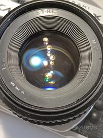 Vendo Asahi Pentax KM (la versione De Luxe della celebre K1000), perfettamente funzionante (esposimetro, avamnzamento, tempi , contapose, ecc), pulita, vano batterie perfetto, completa di tracolla professionale ed obiettivo Petri MC 50mm f1,7, con messa a fuoco morbita, diaframma scattante, no graffi, muffa od altro, qualche minimo granello di polvere, inevitabile, con tappo anteriore