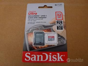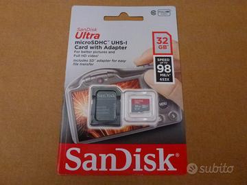 TUTTI PREZZI NON TRATTABILI, PERTANTO NON CHIEDETEMI SCONTI: LEXAR micro SD/XC 64 GB UHS-I CLASS 10 1 Speed Up To 80 MB/S, perfettamente sigillata, modello LFSDM10-64GABC10 codice EAN 843367104604 acquistata a 20 euro, svendo a 12 euro, SAMSUNG EVO Plus with SD adapter micro SD/XC 64 GB UHS-I Card CLASS 10 3 4K Ultra HD Read Speed up to 100 MB/S Write Speed up to 60 MB/S, Faster speeds for high resolution photos and 4K UHD videos, modello MB-MC64G codice EAN 8806088676555 acquistata a 60 euro, svendo a 25 euro, SanDisk Ultra micro SD/HC 16 GB UHS-I Card with Adapter, SPEED UP TO 80 MB/S 533X FULL HD VIDEO 10, 10 YEARS WARRANTY, modello SDSQUNC-016G-GN6MA codice EAN 619659134648 acquistata a 16 euro, svendo a 8 euro, SanDisk Ultra micro SD/HC 32 GB UHS-I Card with Adapter, SPEED UP TO 80 MB/S 533X FULL HD VIDEO 10, 10 YEARS WARRANTY, modello SDSQUNC-032G- GN6IA codice EAN 619659134730 acquistata a 20 euro, svendo a 12 euro e SanDisk Ultra micro SD/HC 32 GB UHS-I Card with Adapter, SPEED UP TO 98 MB/S 653X FULL HD VIDEO 10, 10 YEARS WARRANTY, modello SDSQUAR-032G-GN6IA codice EAN 619659161415 acquistata a 22 euro, svendo a 15 euro. Preferisco volentieri di gran lunga la consegna a mano in zona. Provvedo ad aggiornare tutti i prodotti ed a eliminare dall’elenco quelli venduti. Se li trovate sono sicuramente disponibili e potete evitare di chiedermelo tramite messaggio. Sono intento a svendere tutto quanto possiedo per riuscire sommariamente a fronteggiare e sostenere le ingenti spese mediche specialistiche richiestemi per curare nel migliore dei modi la mia terzogenita e dei relativi quattro traslochi completi affrontati. Pertanto ho pubblicato vari annunci che, se graditi e interessanti, siete invitati a visionare dettagliatamente attraverso le descrizioni e fotografie originali loro poste a corredo. Tengo a precisare altresì che le spese di spedizione, per vostre eventuali richieste, sono costretto a porle a carico dei rispettivi acquirenti. Grazie infinite.