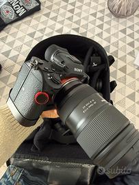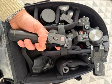 - mirrorless Sony alpha 7 III + cage in metallo e tracolla sgancio rapido.