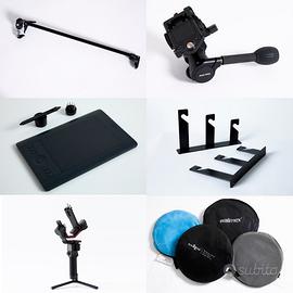 Vendo ampio lotto di materiale fotografico professionale di alta gamma (Canon, Profoto, Dji, Bowens, Walimex, Manfrotto). Kit pronto all’uso per allestire e impostare immediatamente un nuovo studio fotografico professionale. Tutta gli articoli sono usati ma tenuti in ottime condizioni estetiche e meccaniche come si vede dalle foto ed è perfettamente funzionante. Vendo il tutto per inutilizzo della sala posa; sono disponibili ulteriori annunci relativi ad altro materiale fotografico professionale. Consegna a mano o spedizione a carico dell'acquirente. Do priorità per lo scambio di persona in modo da provarlo con calma. Elenco materiale: 1 Obiettivo Canon EF 24-70mm f/2.8L II USM 1 Obiettivo Canon EF 85mm f/1.2L II USM 1 Obiettivo Hasselblad HC 120 mm f/4 serie H 2 Profoto D2 500 Watts 1 Gimbal stabilizzatore DJI Ronin RSC 2 1 Manichino bianco opaco per foto e-commerce 1 Walimex Pro Softbox a 16 angoli (Diametro 180 cm) 1 Bank Ottagonale Aurora 120 XL 2 Bank Strip Walimex Pro 40x180 1 Bank Bowens 60x60 1 Ombrello Bowens Professionale Modulabile 2-in-1 4 Lastolite ripieghevoli (misure 60x90 e 70x110) 1 Portafondale Manfrotto Serie 044 (per 3 fondali) 1 Testa panoramica Pan/Tilt Velbon PHD-66Q 1 Supporto professionale HPRC 0500 per laptop (Laptop Plate) 1 Tavoletta grafica Wacom Intuos Pro PTH-451 Small