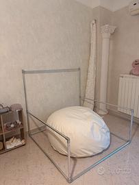 Struttura in metallo quadrata, in ottime condizioni. Bean puff nuovissimo! Prezzo non trattabile. Bean puff in vendita vuoto