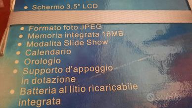 Vendo cornice digitale Autovox ax.fad3535 nuova imballata originale. schermo 3,5", ingresso usb 2, formato foto jpeg, memoria integrata 16MB, modalità sfide show, calendario, orologio, supporto di appoggio, batteria al litio ricaricabile.