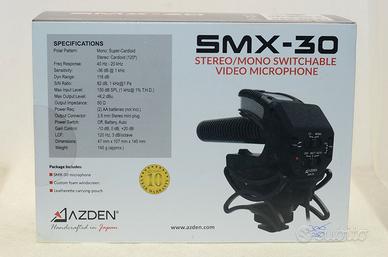 L'Azden SMX-30V è un microfono con doppia capsula microfonica Mono e stereo selezionabile, video per videografi e vlogger che desiderano aumentare il livello dell'audio.