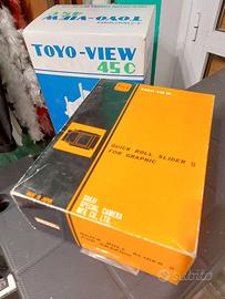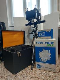 Vendo Banco Ottico TOYO 45C completo di ottica e accessori originali in ottimo stato. Dotazione: Ottica Rodenstock Geronar 90mm con piastra TOYO Soffietto estensibile (lunghezzacompleta del banco) Soffietto in pelle per utilizzo grandangolare Quick Roll Slider II per adattamento porta pellicole 120 (porta pellicole escluso) Valigia rigida e imballi originali Due CHASSIS per pellicole piane formato 10X12 - 4X5 Scatto flessibile SOLO RITIRO A MANO