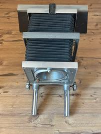 Vendo banco ottico, apertura per vetro smerigliato 7x7 pollici. Condizioni come da foto. Soffietto sano senza fori. Movimenti funzionanti.